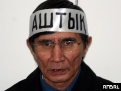 Оппозиционный политик Жасарал Куанышалин с повязкой на голове с надписью «Голодовка». Алматы, 14 мая 2010 года.