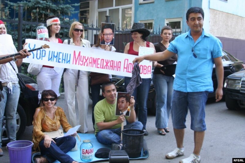 - Чуть ранее в этот же день мы провели акцию протеста против действий нынешнего руководства БТА банка, который подал иск против нашей газеты и требует в качестве возмещения морального ущерба огромную сумму. В итоге получается, что нынешний БТА банк объединил журналистов «Республики» с Канатом Ибрагимовым.