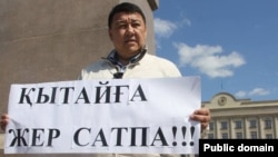 Активист Исатай Утепов протестует на площади имени Абая. Уральск, 24 апреля 2016 года.