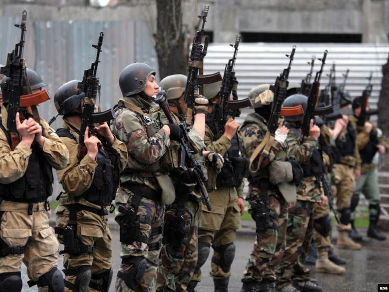 Вооруженные полицейские на улицах Бишкека. 8 апреля 2010 года.