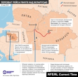 Протасевича и его подругу милиция увезла вскоре после приземления рейса в белорусской столице. Ryanair сообщила, что рейс благополучно прибыл в Вильнюс 23 мая после задержки в Минске на несколько часов.
