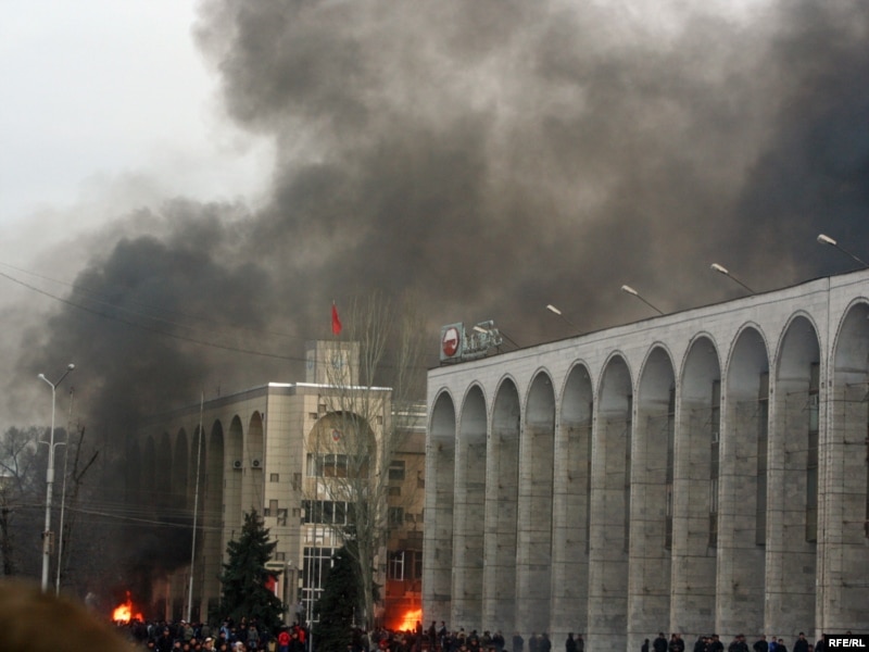 Несмотря на объявленный комендантский час в Бишкеке, сообщается, что демонстранты захватили здание парламента, государственной службы национальной безопасности, из СИЗО освобождены заключенные, сожжено здание генеральной прокуратуры. Мародеры выносят оргтехнику и мебель. На улицах слышна перестрелка.