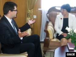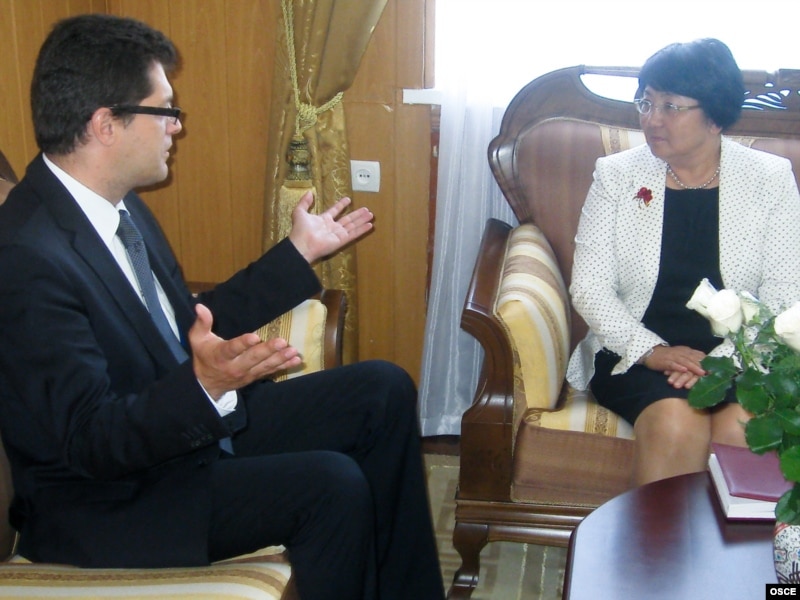 Роза Отунбаева, глава Временного правительства Кыргызстана, и Янеш Ленарчич, директор Бюро по демократическим институтам и правам человека ОБСЕ. Бишкек, 28 июня 2010 года.
