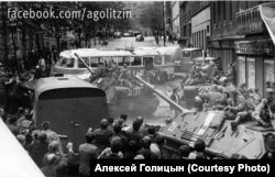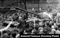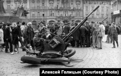 Русская редакция Азаттыка – Радио Свобода – с любезного разрешения Алексея Голицына впервые публикует эти уникальные фотографии. В альбоме не указаны точные даты снимков, но, судя по запечатленным на них событиям, все они сделаны в первый день после ввода войск, утром и днем 21 августа. Алексею Голицыну и Радио Свобода не удалось установить имя автора фотографий.